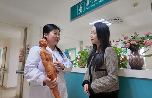 市第四人民醫(yī)院中醫(yī)科主治醫(yī)師王麗萍為記者介紹人體穴位。