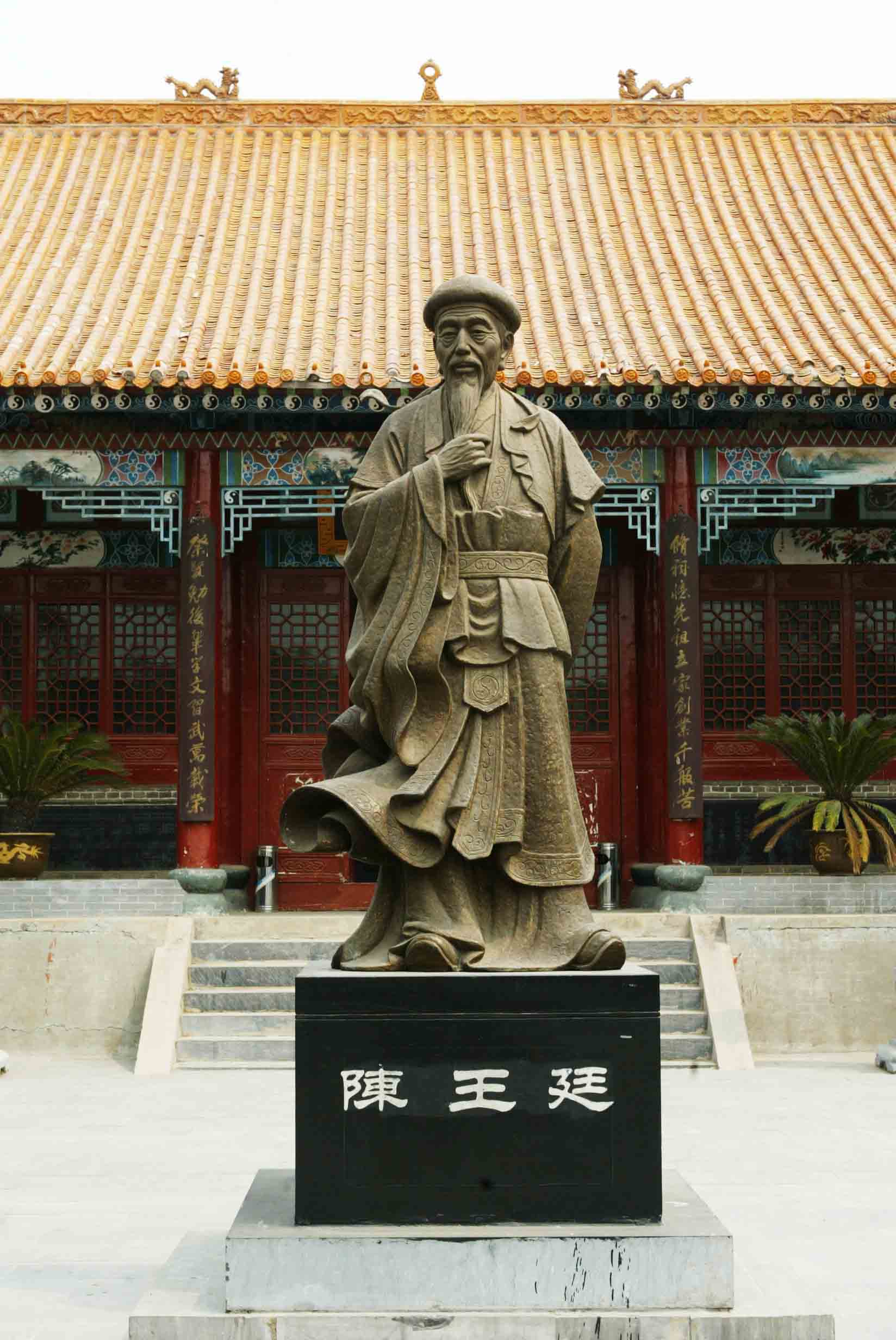 陳王廷(1600-1680年)字奏庭,溫縣陳家溝人,陳氏太極拳創始人。他融諸家之長于一爐,創編了太極拳術,成為當今風靡世界的太極拳之源,被中外太極拳界尊為鼻祖。陳王庭的著作因年代久遠,多遭散失,現尚存(拳經總歌)、(長短句)詞一首。詞上半首有,「嘆當年,披堅執銳,掃蕩群氛,幾次顛險!蒙恩賜,枉徒然,到而今年老殘喘。只落得(黃庭)一卷隨身伴,閑來時造拳,忙來時耕田,趁余閑,教下些弟子兒孫,成龍成虎任方便。