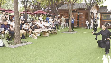 豫港學子在溫縣陳家溝觀看太極拳名家表演。